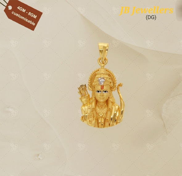 This 22 karat gold pendant is modelled after Lord Ram Lalla .