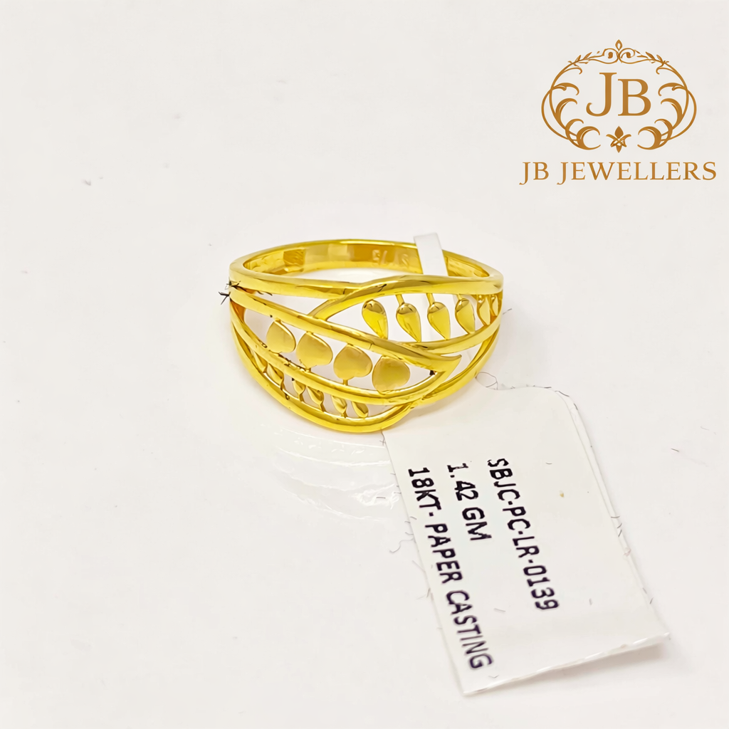 Enhance your jewellery collection with this exquisitely crafted 18KT gold ring featuring a unique layered leaf-inspired design. The intricate openwork pattern gives the ring a lightweight yet luxurious appearance, making it comfortable for daily wear while maintaining a premium look. Carefully finished with smooth curves and polished detailing, this ring reflects timeless style and fine craftsmanship. Ideal for gifting, celebrations, or personal styling, this elegant piece adds a touch of sophistication to any outfit.