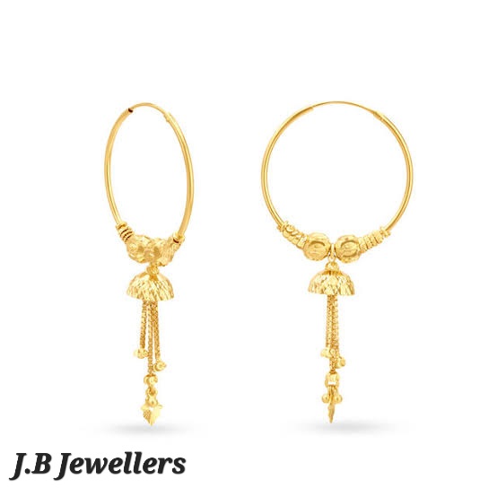 This gold hoop earrings crafted in 18 karat gold with gold beads and a petal end.