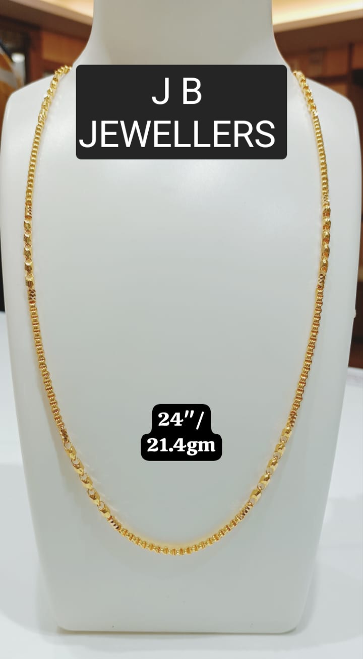 Grooved Cylinders alternating with Spiral Pieces attached to thick Chain who like to keep it casual. Crafted in 22 Karat Yellow Gold